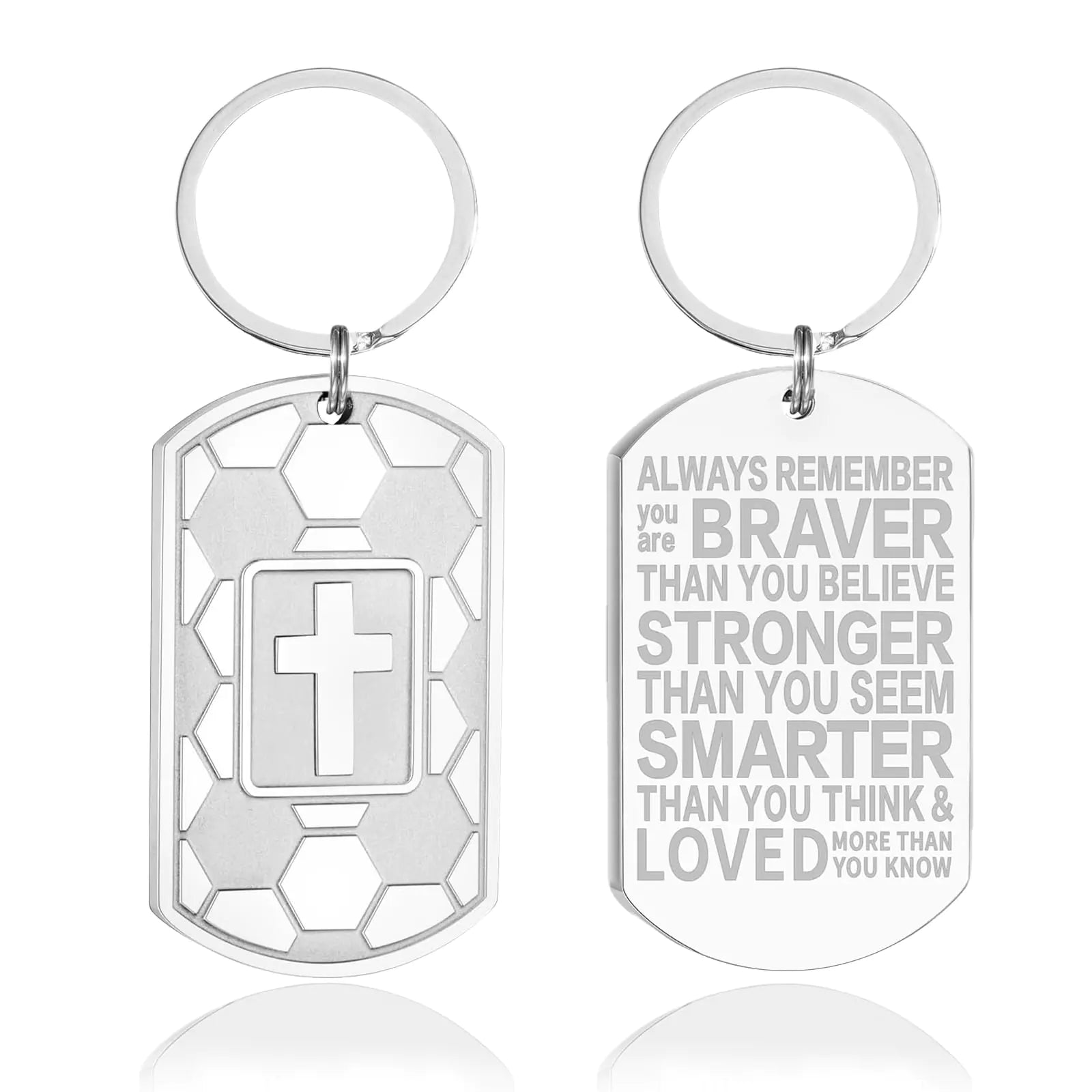 Keychains for Men Football Bible Verse Mens KeychainMens Accessories Christmas Gifts (Soccer-Always Remember Silver)