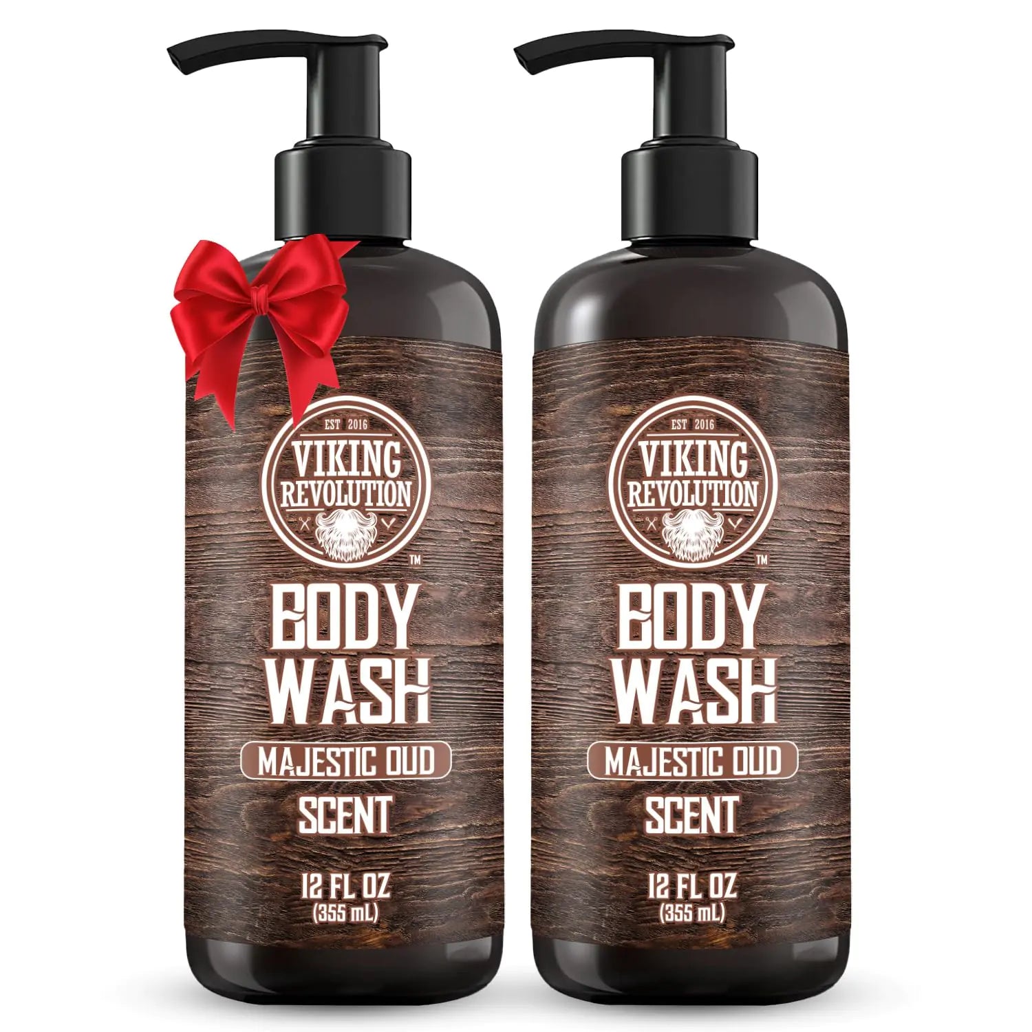Viking Revolution Mens Body Wash - Majestic Oud Mens Body Wash - Mens Natural Body Wash for Men with Vitamin E and Rosemary Oil - Shower Gel Body Wash Men (12 Fl Oz Pack of 2)