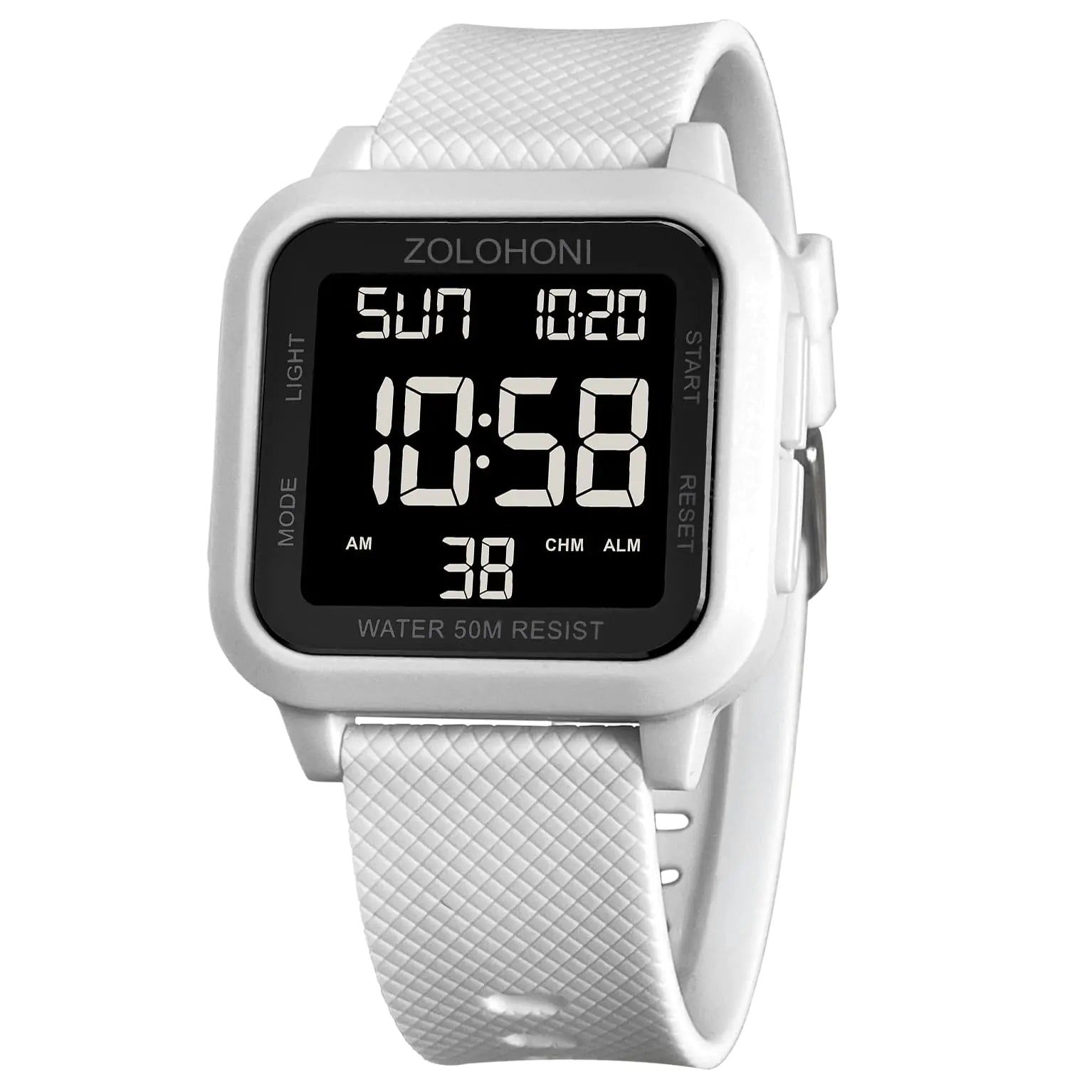 zolohoni Square Mens Digital Watch Big Numbers Dial Large Face Waterproof LED Watches with Alarm Date Stopwatch